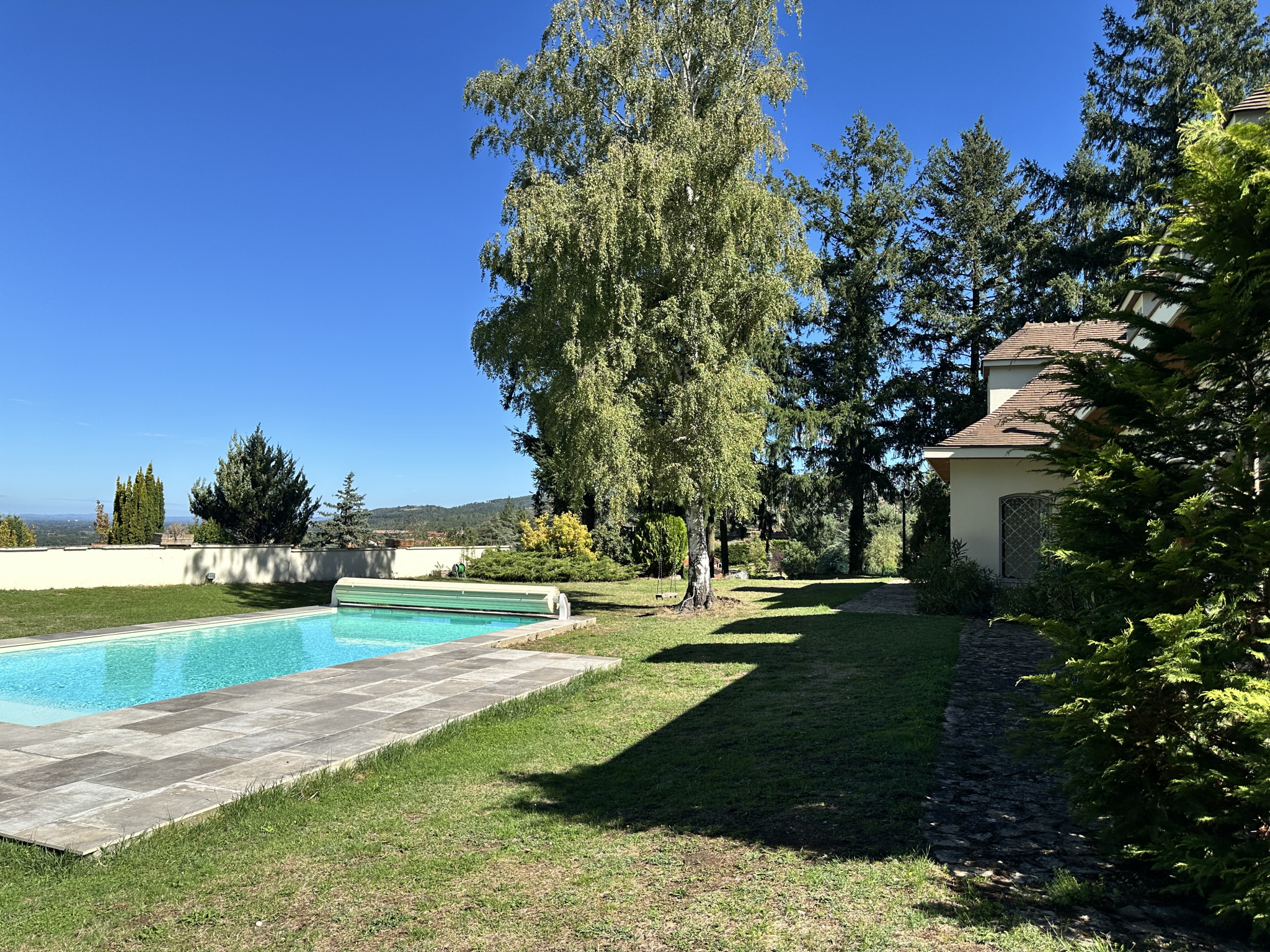 Les extérieurs sont parfaitement aménagés avec : - Piscine moderne, - 3 Terrasses totalisant environ 270 m², - Jardin clos, plat et paysager, - 10 stationnements (4 intérieurs + 6 extérieurs)
