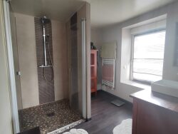 PLESLIN-TRIGAVOU. Maison de maître en bon état comprenant : au rez-de-chaussée séjour salon avec poêle à bois, cuisine aménagée équipée, wc, buanderie, chaufferie, attenant une salle de bar avec wc. Au premier étage une suite parentale (chambre, dressing, salle d'eau). Au deuxième étage un palier, 3 chambres, une salle de bains avec wc. Attenant au premier étage avec une entrée indépendante, un studio comprenant une entrée, salle d'eau avec wc et placard, pièces de vie (cuisine aménagée, salon et couchage). Cette maison peut être divisée en 3 habitations. Hangar indépendant ( 78m2 au sol plus mezzanine ), cellier indépendant. Située à 3 min des commerces, 5 min de PLEURTUIT, 10 min de DINARD et de DINAN, proche de la voie verte. Si vous aimez les beaux volumes, vous vous sentirez bien dans cette maison. Le tout sur un terrain de 1199 m² sans vis à vis.