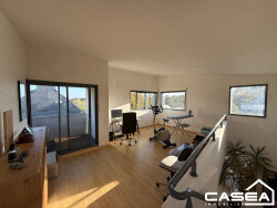 Maison de plain-pied récente et très lumineuse offrant un bel espace de vie, séjour donnant sur terrasse et cuisine ouverte, trois chambres, wc et salle de bains avec baignoire et douche, grand cellier et garage. A l'étage: une grande pièce lumineuse pouvant faire office de bureau ou de chambre. DPE: en cours Ref: 1716