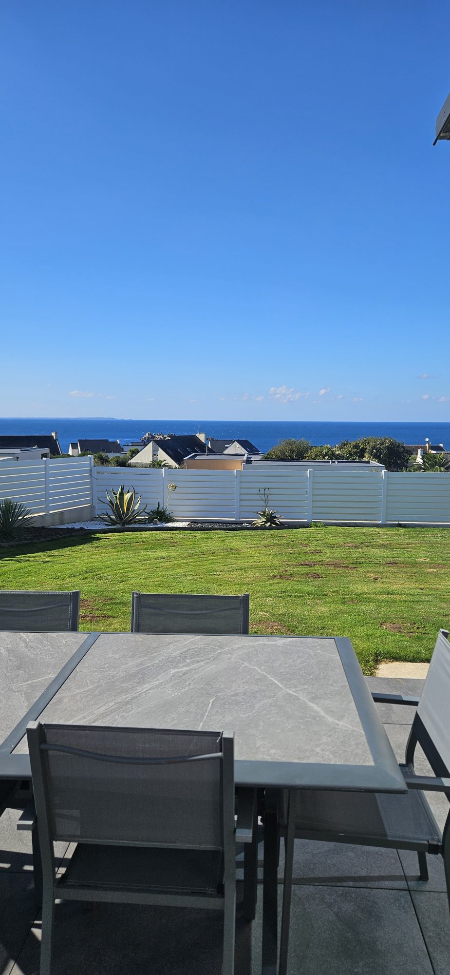 A Vendre - Plouarzel Plages - En position dominante cette belle bâtisse de &996 offre une large et belle vue sur la mer d'iroise et l'île d'Ouessant - Edifiée sur sous sol, elle propose une grande pièce de vie de + de 55 m2 avec vue mer, une grande cuisine et une vie de plain pied - A l'étage, 3 chambres et 1 bureau, tous avec vue sur la mer également On retrouvera accolé à la maison un appartement indépendant type T1 lui aussi avec une belle vue sur la mer Le jardin de 2.000 m2 est très agréable e reste sans vis à vis