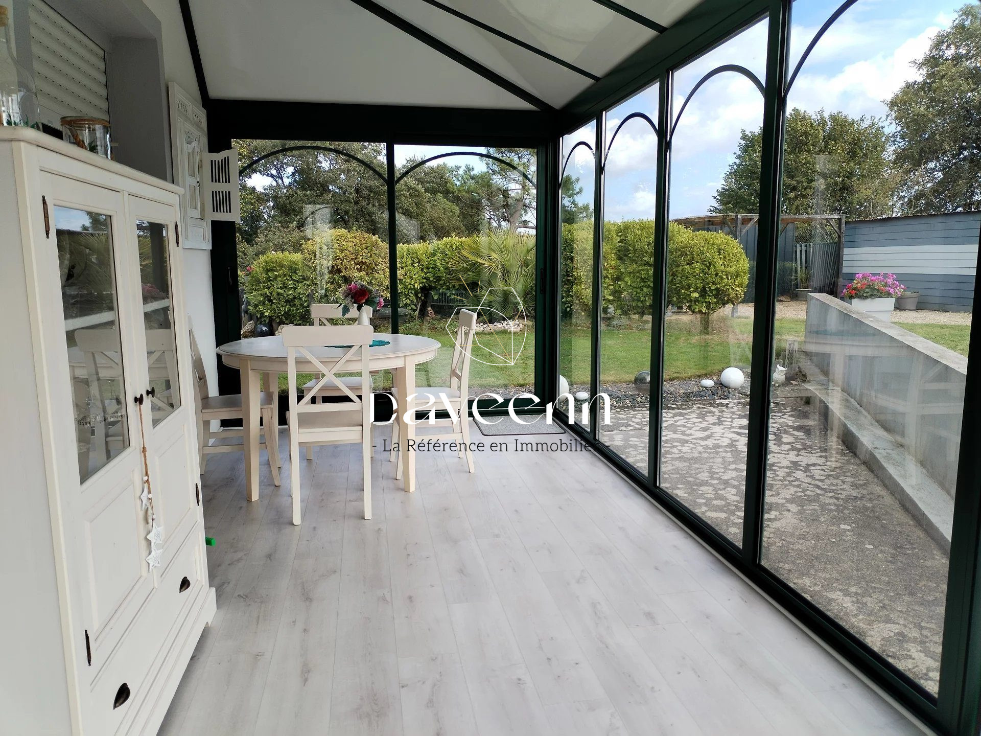 L'extérieur offre un cadre entretenu et fonctionnel?: portail motorisé, jardin clos facile d'entretien (robot tondeuse possible) et un vaste hangar de plus de 80?m² avec dalle béton et électricité, permettant par exemple du stockage, ou de l'hivernage.