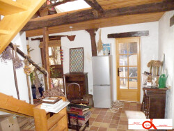 Cuisine avec cheminée four à pain et poutres, séjour, salon,