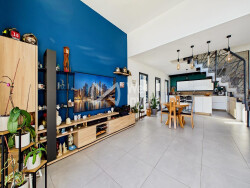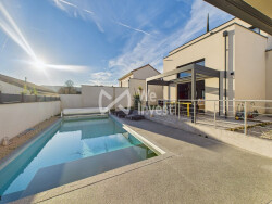 Propriété contemporaine d'exception avec piscine Pont de l'Isère. Située dans un environnement calme et recherché, à proximité des écoles et des transports, cette maison contemporaine construite en 2020 offre des prestations de standing et un cadre de vie privilégié. Développant 138 m² habitables (environ 177 m² de surface totale hors terrasses), la propriété séduit par ses volumes généreux, sa luminosité et la qualité de ses finitions. Espaces de vie Le rez-de-chaussée accueille une pièce de vie de plus de 71 m², réunissant séjour, salle à manger et cuisine dans un espace ouvert et parfaitement fonctionnel. Une baie vitrée à galandage prolonge naturellement l'espace intérieur vers l'extérieur et donne accès à deux terrasses, dont l'une est équipée d'une pergola bioclimatique. Ce niveau comprend également : un WC indépendant une buanderie un garage automatisé de plus de 33 m²