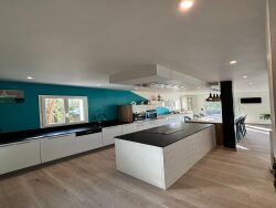 LE SOURN (56300) Magnifique maison de Prestige de 200 m2 rénovée en 2021 avec piscine et 3300 m2 de jardin paysagé. A voir!! Superbe maison de 200 m2 environs idéalement située dans un environnement très prisé, calme et verdoyant à seulement 3 kilomètres de Pontivy. Avec 5 chambres, 2 salles de bains dont une suite parentale en RDC, cette maison est parfaite pour une famille souhaitant le calme et la modernité. Rénovée en partie en 2021 avec goût, elle propose aussi une magnifique cuisine haut de gamme aménagée/équipée alliant fonctionnalité et design. Le salon et la salle à manger offrent une vue totale sur le jardin arboré et sa terrasse de 33 m2 donnant un accès direct sur une belle piscine de 7x4. Un double garage (45 m2) avec une porte sectionnelle motorisé dispose d'une cave à vin enterrée. A proximité: Arrêt de bus scolaire, chemins pédestre, forêt idéal pour de belles promenades. Points positifs: Excellente isolation ( DPE : A) Panneaux solaires pour l'électricité et l'alimentation en eau chaude. Chauffage par le sol avec système de géothermie. Belle piscine avec terrasse Aspiration centralisée Volets roulants électriques Grand parking Bus à proximité Vaste terrain de plus de 3000 m2 comprenant également une partie verger/potager. Quartier très prisé.
