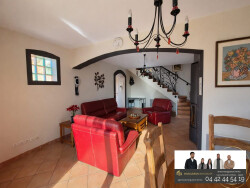 NOUVEAU EXCLUSIF PORT DE BOUC, QUARTIER RECHERCHÉ AU CALME, L'agence Margueron Immobilier vous présente à la vente, une villa individuelle élevée d'un étage type 4 de 107 m² habitable avec terrasse et garage et piscine hors-sol sur une parcelle de 524 m². Possibilité de stationner deux véhicules à l'extérieur. Elle se compose au rez-de-chaussée d'une entrée, un salon/séjour avec un poêle à bois, un cuisine aménagée et équipée avec buanderie et une suite parentale avec salle d'eau et wc. A l'étage vous y trouverez deux chambres avec placards, une salle de bains et un wc indépendant. Ses atouts : La maison est équipée d'une climatisation réversible, vide sanitaire, toiture isolée, d'un poêle à bois, de menuiseries double vitrage PVC / Alu ainsi que d'un chauffe eau thermodynamique. Pour plus de renseignements, contactez Adeline THOREZ au 06.27. 39. 46.93. Honoraires charge vendeur.