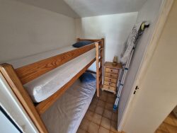Au rez-de-chaussée vous y trouverez une salle d'eau avec wc, une cabine comprenant des lits superposés et un salon cuisine de 12 m² donnant accès à une terrasse de 13 m². A l'étage, une mezzanine rallongée faisant office de chambre.