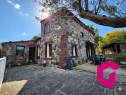 A Prades (43300): Située dans l'un des plus beaux villages d'Auvergne, dans un cadre naturel incroyable, cette maison 5 pièces de 109m² en bord de rivière (hors zone inondable) repose sur près d'un hectare et demi de terrain. Cette maison d'architecte dispose d'un séjour chaleureux, de deux chambre, d'une SDB, de WC séparés, d'un espace buanderie et d'un bureau au RDC. A l'étage, on trouve une chambre avec sa propre terrasse, WC séparés et un dressing. Cette maison tournée vers ses extérieurs avec pas moins de trois terrasses, propose le confort d'une maison moderne, associé au cachet de l'ancien avec son parement pierres et les boiseries présentes à l'intérieur. L'environnement de ce bien est à couper le souffle ! Sur un site classé natura2000, sans aucun vis-à-vis et serti dans un écrin de verdure, le calme est garanti ! Les amoureux de pleine nature pourront profiter des promenades et autres randonnées, de la pêche ou de la pratique des sports de plein air (à proximité: bases d'eaux vives, sites d'escalade naturels entre autres). Pour les adeptes de la mise au vert au calme, en plus de la petite plage privative qui se trouve sur le terrain, à moins de 100m de la maison, la plage de carte postale située au pied du rocher dispose d'une baignade surveillée en saison estivale. Et pour les personnes souhaitant lier le plaisir au professionnel, en annexe de cette jolie maison, on trouve plusieurs dépendances (cabane bois, tipi, 2 mobil-homes en toile tout confort, blocs sanitaires), ainsi que des bornes de raccordement à l'eau et l'électricité réparties sur le terrain, celui-ci étant un camping privé dont il est possible de reprendre l'activité. Pour plus de renseignements sur ce petit morceau des Gorges du Haut-Allier, contactez votre agent GTI Immobilier Olivier Pombar au O6.O8.85.76.59