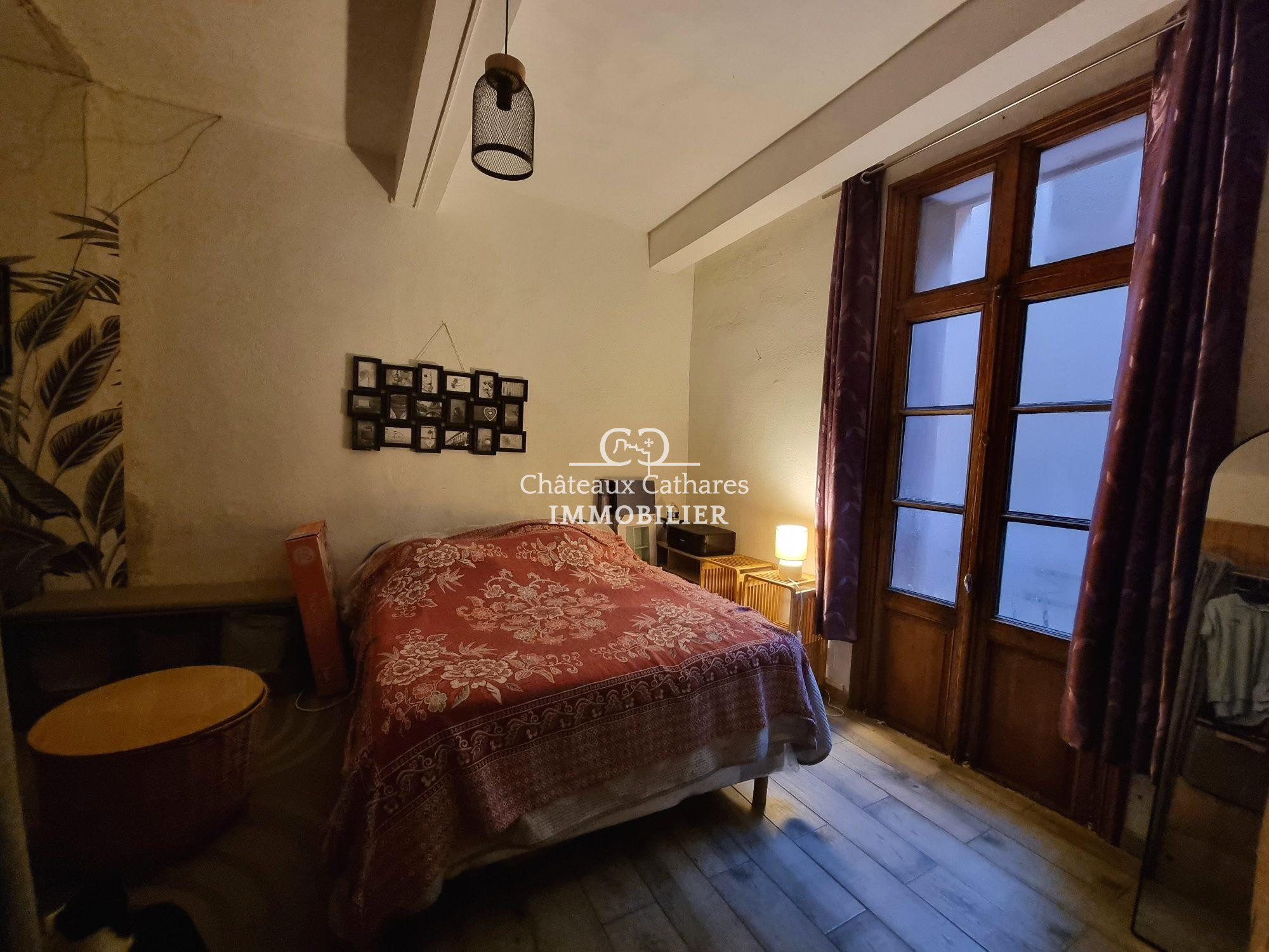 Bien que l'intérieur soit à rafraîchir, cette maison est une toile blanche, prête à être transformée selon vos goûts et vos besoins. Les portes à simple vitrage apportent une touche d'authenticité et laissent entrer la lumière naturelle.