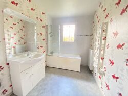 Un pavillon à usage d'habitation de plain pied, élevé sur un vide sanitaire, composé d'un rez-de-chaussée et combles aménageables, comprenant : - Au rez-de-chaussée : entrée, couloir distribuant un séjour avec cheminée insert, arrière cuisine avec chaufferie, placards encastrés sous escalier, WC, salle de bains, trois chambres, cabinet de toilette. - A l'étage sous combles : deux chambres et grande salle de jeu.