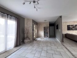 Menuiseries en PVC double vitrage avec volets roulants électriques dans toute la maison. Extérieurs soignés et ambiance vacances : Piscine avec pompe et liner neufs*, entourée de palmiers pour une atmosphère dépaysante. Terrasse de 45 m² équipée d'un store banne électrique, idéale pour les repas ou les moments de détente. Garage + stationnement pour 6 véhicules dans l'allée latérale. Un terrain de charme : Terrain arboré et entièrement clôturé, parfait pour laisser les enfants jouer en toute sécurité. Verger richement planté : cerisiers, mirabelliers, pommiers À la fin de l'été, un point d'eau naturel bordé de roseaux se forme.