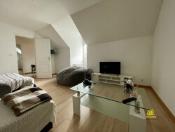 A l'étage : Un palier, deux grandes chambres et une salle d'eau avec douche et WC.