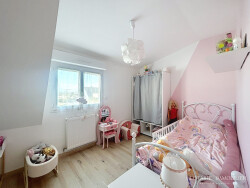A l'étage, un dégagement dessert 3 chambres et une salle d'eau avec vasque.