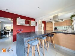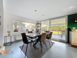 au calme, au fond d'un petit chemin privé et à proximité des commodités, découvrez cette charmante maison individuelle des années 30 ayant bénéficié d'un agrandissement, offrant aujourd'hui une ambiance moderne et particulièrement soignée. Implantée sur un beau terrain d'environ 12 ares, la propriété séduit par ses extérieurs agréables et préservés : grande cour, terrasse couverte, belle intimité et présence de grands arbres qui confèrent au lieu une atmosphère paisible et verdoyante. Un carport complète les aménagements extérieurs. Dès l'entrée, la maison propose un bel espace pouvant idéalement accueillir un bureau ou un coin lecture. Celui-ci mène à une grande pièce de vie lumineuse, ouverte sur la terrasse couverte grâce à une large baie vitrée, créant une belle continuité entre intérieur et extérieur. La maison dispose également d'une très belle cuisine équipée, parfaitement intégrée à l'ensemble, ainsi que d'un espace sauna apportant un confort supplémentaire. L'ensemble de la propriété se distingue par son excellent état général et un niveau technique particulièrement soigné, ne nécessitant pas de travaux. À l'étage, l'espace nuit se compose de deux grandes chambres. Point important à noter : la maison ne dispose actuellement que de deux chambres, ce qui conviendra particulièrement à un couple, une petite famille ou à toute personne recherchant avant tout de beaux espaces de vie et un environnement calme. Une propriété pleine de charme, alliant cachet, modernité et qualité d'entretien, à découvrir sans tarder.