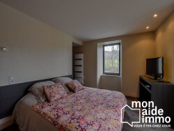Une annexe, elle aussi rénovée, permet de loger 2 à 4 personnes. Elle est complétée par une grande salle pouvant accueillir une grande tablée, une terrasse semi couverte et des caves. La toiture est neuve.