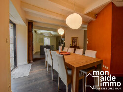 Le bâtiment principal est un moulin du XVIII ème siècle entièrement et récemment rénové dans les règles de l'art par des artisans. Ce moulin, en production d'électricité, dégage environ 10.000 de revenus de revente d'électricité par an. D'une surface habitable de 160 m2, il se compose d'une grande pièce à vivre de 66 m2, d'une suite parentale au rez de chaussée, de 3 chambres ainsi que d'une autre suite à l'étage. 2 belles terrasses en IPE : une donnant sur le plan d'eau et l'autre sur le canal de fuite. Le sous sol complet, au niveau de la rivière sert d'emplacement pour les turbines, de stockage, garage, ... La toiture en lauzes est neuve.