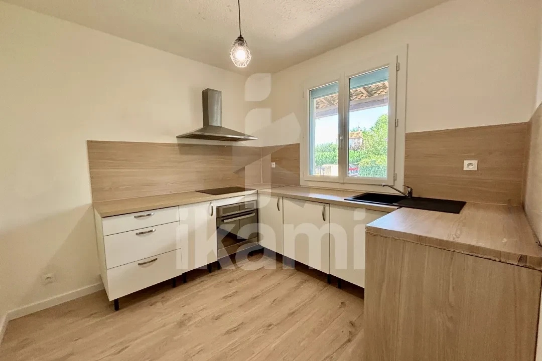 ...Villa entièrement rénovée de 80m² environ de plain-pied possédant un séjour salle à manger ouvert...