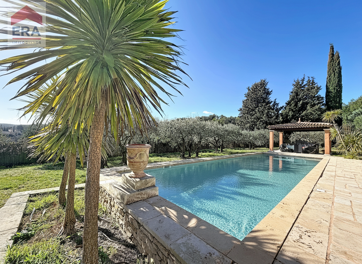 ? Points forts : Vue panoramique sur les collines et les champs ? 7 chambres spacieuses et lumineuses Deux cuisines équipées 3 grandes terrasses, dont deux à l'étage avec vue sur la piscine Piscine 11 x 4 pour des moments de détente Grand terrain paysagé de 10 000 m² avec eau du canal de Provence Stationnement pour plus de 10 véhicules