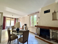 Au rez-de-chaussée, l'entrée s'ouvre sur un salon-séjour lumineux avec cheminée, complété par une cuisine fermée aménagée et équipée, une salle de douche, une grande chambre lumineuse et un WC indépendant.