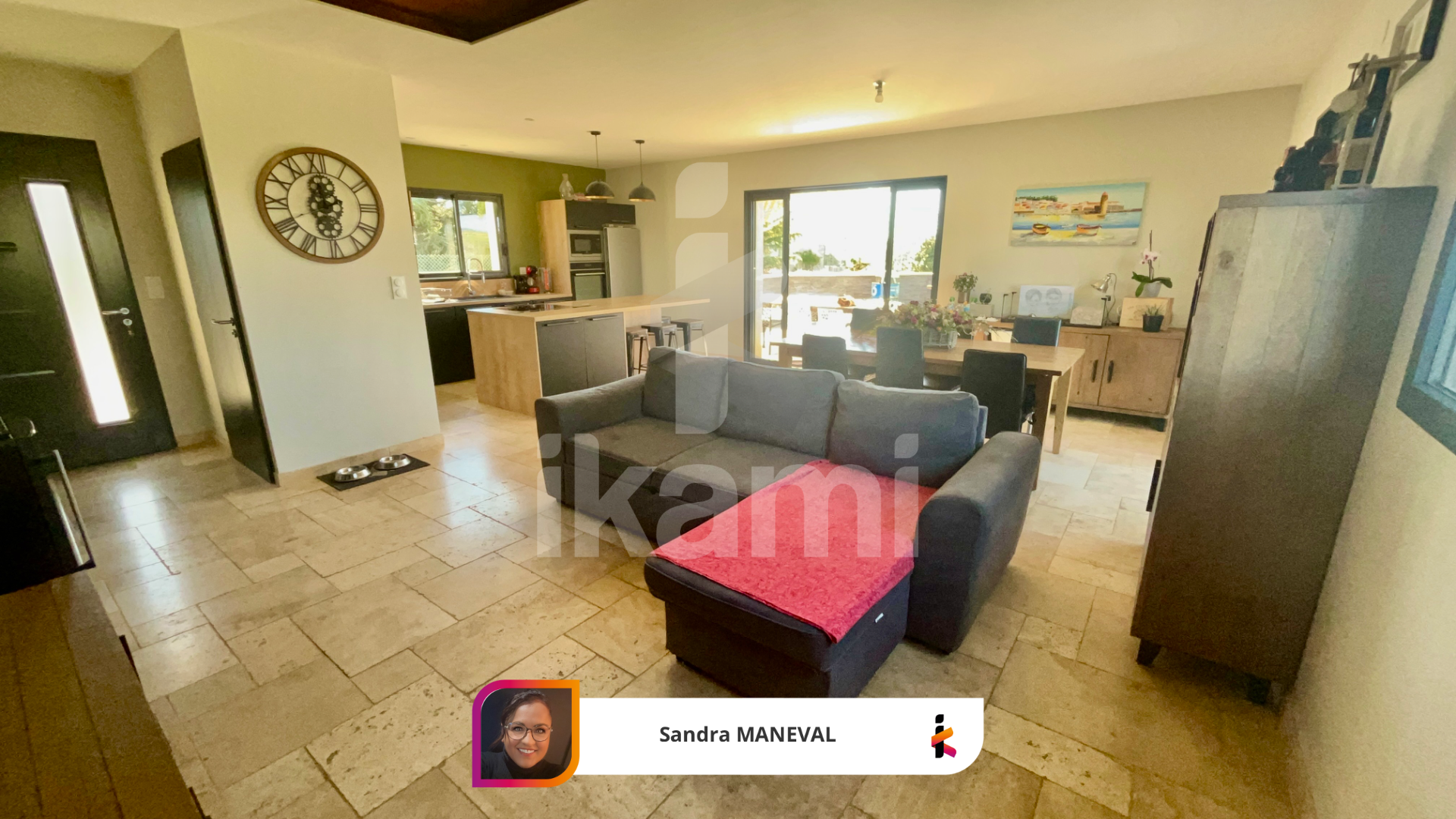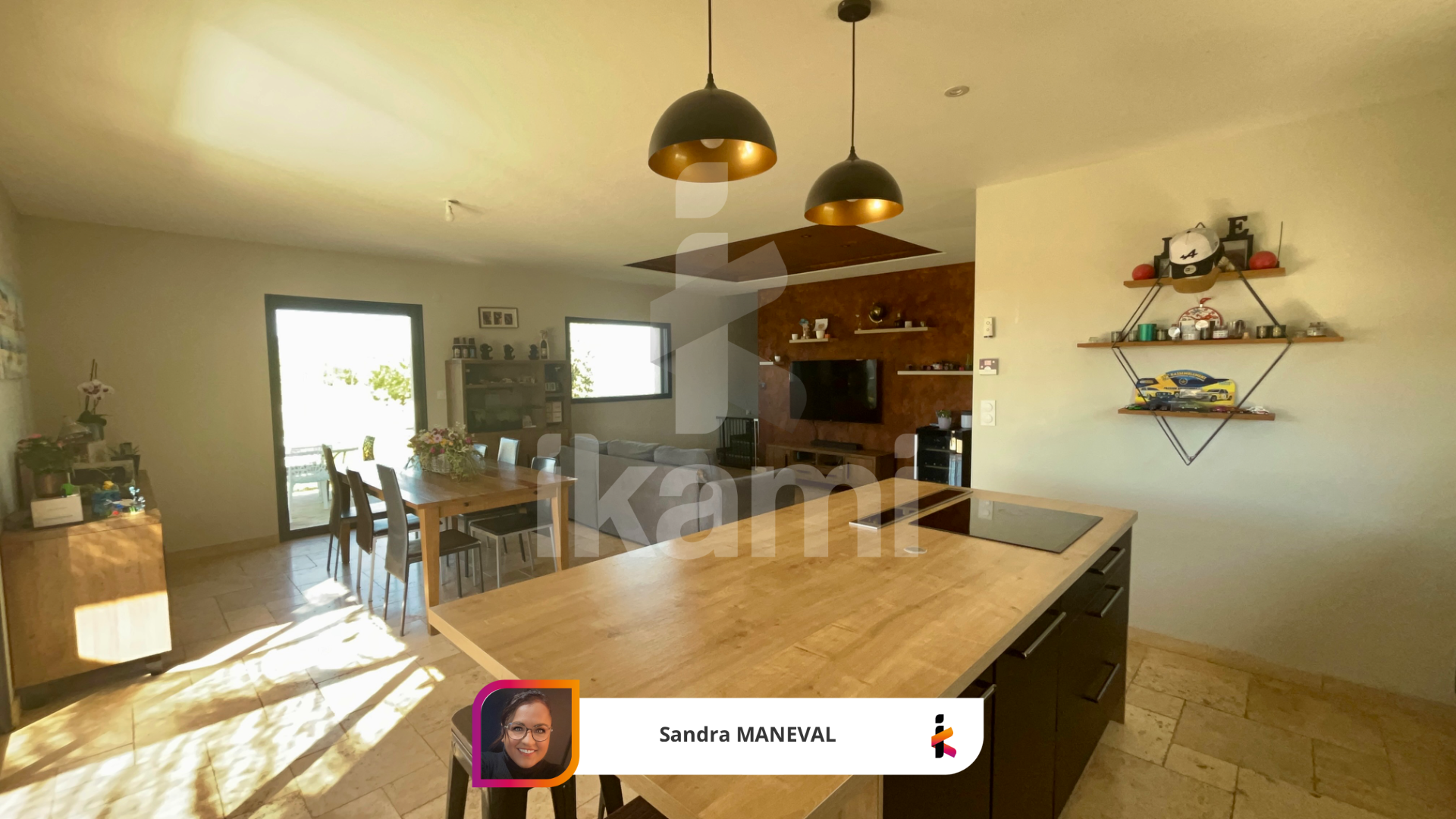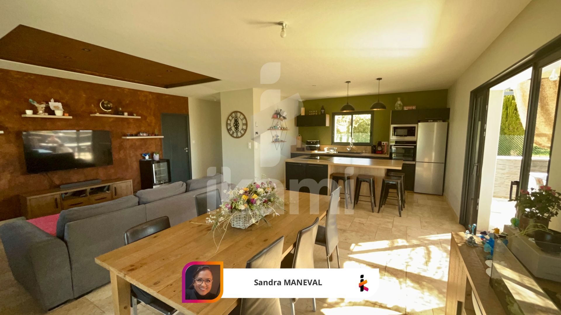 Une pièce de vie lumineuse, conviviale et bien agencée.