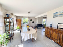 Au rez-de-chaussée : Entrée spacieuse avec placard, Vaste salon-séjour de 51m² avec cheminée, offrant un bel espace de réception, Cuisine indépendante, aménagée et équipée, complétée par une arrière cuisine permettant un bel espace de stockage. Suite parentale avec dressing et salle d'eau. WC indépendant avec lave-main. À l'étage : Palier desservant l'espace nuit, 4 chambres. Pièce supplémentaire pouvant faire office de dressing ou de bureau. Salle d'eau, WC indépendant. Extérieurs & Équipements : Sous-sol total de 110 m² comprenant un garage de 58 m² (3 véhicules) avec porte automatique ainsi que plusieurs espaces de stockage, Parcelle close et arborée de 2 841 m². Double vitrage et volets électriques, Chauffage électrique avec chauffe-eau thermodynamique, Puits permettant arrosage du jardin à moindre coûts. Alarme et caméras, Rénovation avec des matériaux de qualité. Un bien rare sur le marché, coup de coeur assuré !