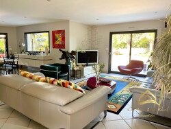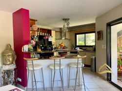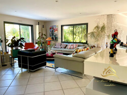 Découvrez cette magnifique maison contemporaine de grand standing, construite en 2001 et en excellent état, offrant un cadre de vie exceptionnel alliant modernité et confort. Avec une surface habitable de près de 170m² et un terrain d'environ 880 m², cette propriété de plain-pied sur deux niveaux vous séduira par sa spacieuse pièce à vivre, ses 4 chambres, ses 2 salles d'eau et ses 2 WC indépendants. La cuisine aménagée et équipée, avec son coin cuisine, un véritable atout pour les amateurs de gastronomie et sa véranda moderne offrant une vue sur la terrasse et la piscine. Profitez d'une belle terrasse et d'un jardin paysagé, parfaits pour des moments de détente en plein air. La piscine chauffée et sécurisée par un volet est un véritable plus pour les journées estivales. Les grandes ouvertures en aluminium à double vitrage laissent entrer une lumière naturelle abondante et offrent une vue imprenable sur le jardin et la terrasse. Située dans un quartier privilégié, cette propriété est à proximité de toutes les commodités : écoles (maternelle et élémentaire à 5 min à pied, collège à 10 min en voiture), commerces (alimentation générale et restaurant à 5 min à pied), et services (médecins généralistes à 10 min à pied). La ligne de bus est également accessible à 5 min à pied. Ne manquez pas cette opportunité unique de vivre dans une propriété offrant de très belles prestations, alliant confort, élégance et praticité. Contactez nous dès maintenant pour une visite et laissez-vous charmer par cette perle rare.
