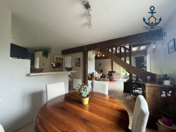 La maison se compose au rez-de-chaussée d'un beau séjour lumineux, parfait pour les moments en famille, ouvert sur une cuisine moderne et entièrement équipée, créant un espace de vie chaleureux et convivial.