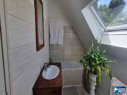 MAISON EN PIERRE SAINT-GUINOUX - Sur une parcelle de 495m², une maison en pierre comprenant, au rez-de-chaussée : une pièce de vie avec cheminée, une cuisine, une chambre, une salle d'eau avec wc et un dressing. A l'étage : un palier desservant 4 chambres et une salle de bains. Un grand garage avec porte motorisée.