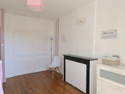 Dès l'entrée, on découvre une belle pièce de vie avec une cuisine ouverte de 26 m², conviviale et lumineuse, idéale pour les moments en famille. Un espace bureau de 7 m² complète l'ensemble, offrant un coin calme pour télétravail ou lecture. L'étage accueille quatre chambres aux surfaces harmonieuses, toutes habillées de leur parquet d'origine, avec cheminées décoratives et rangements intégrés qui renforcent le caractère authentique du lieu.