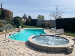 Côté extérieur Une piscine, un jacuzzi, un pool house avec sa cuisine d'été et son four à pizzas, un local technique avec toilette, une douche à l'extérieur Le jardin est entièrement clos et arboré, portail motorisé Terrasses de 110 m² entièrement carrelées