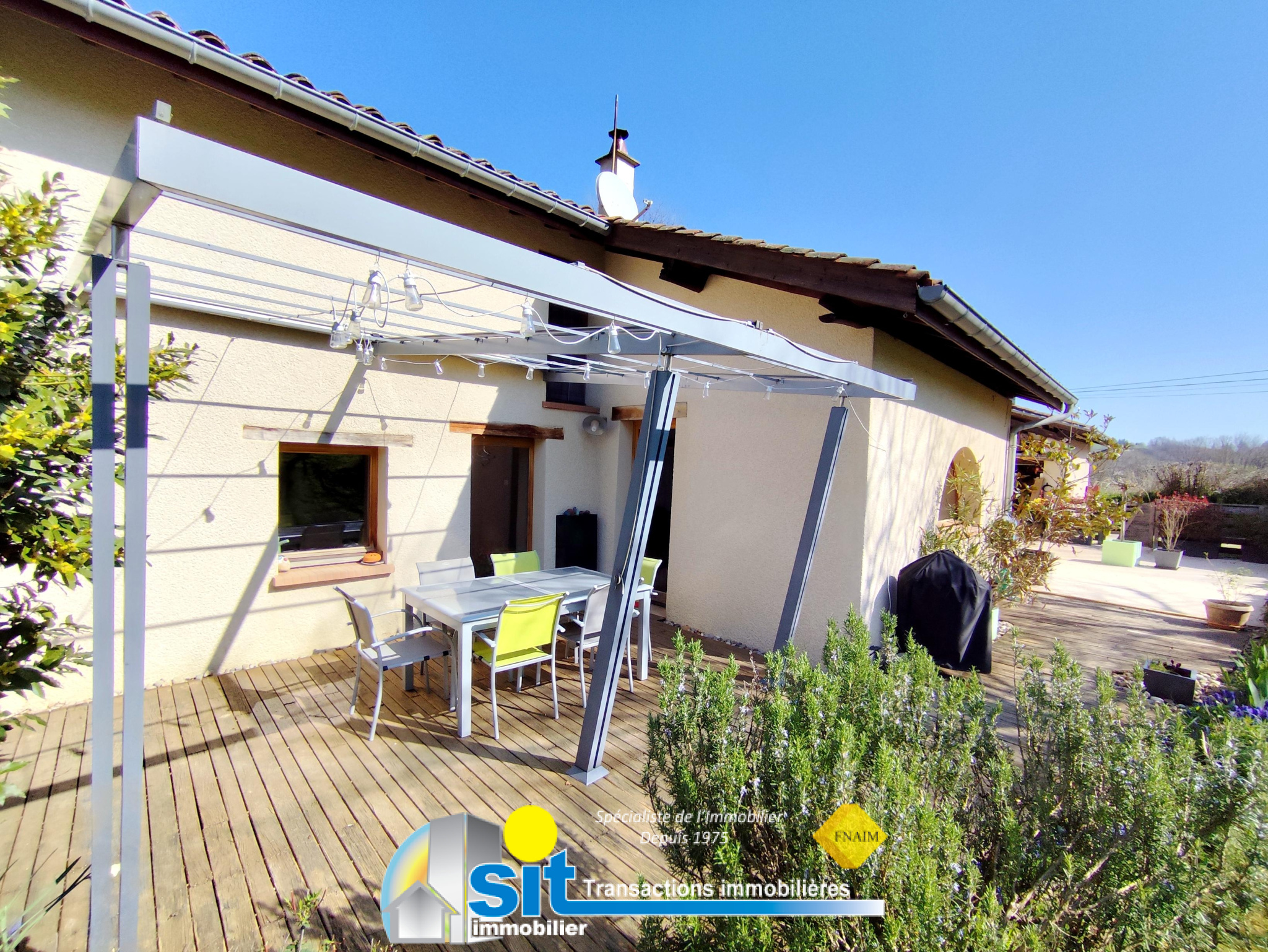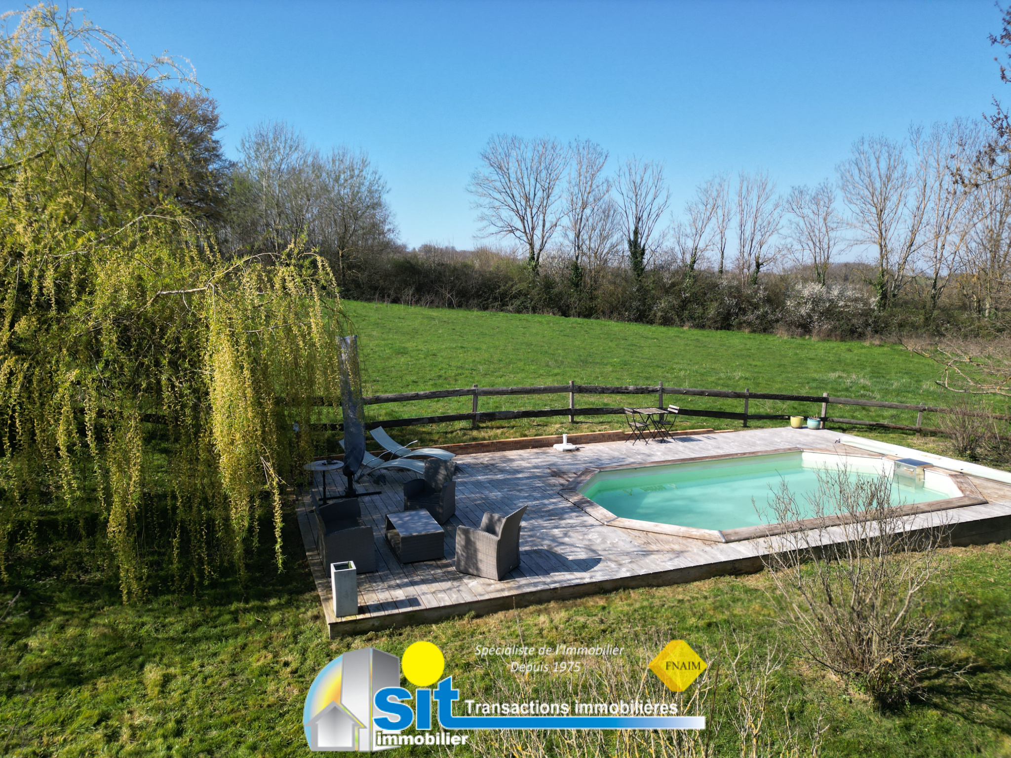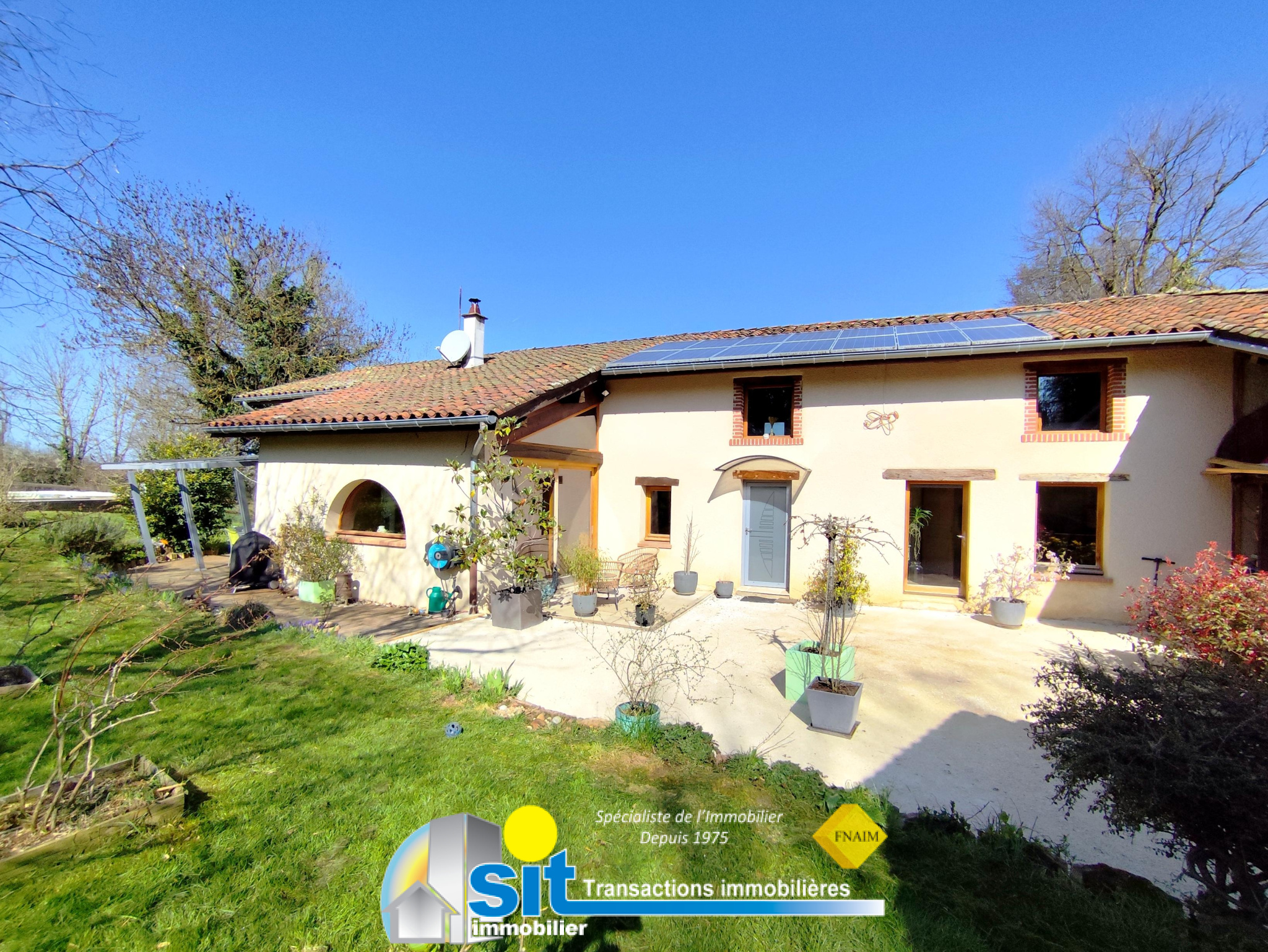 À l'extérieur, le terrain plat et arboré de 1 700 m², en zone constructible, ouvre des perspectives d'aménagement ou d'extension.