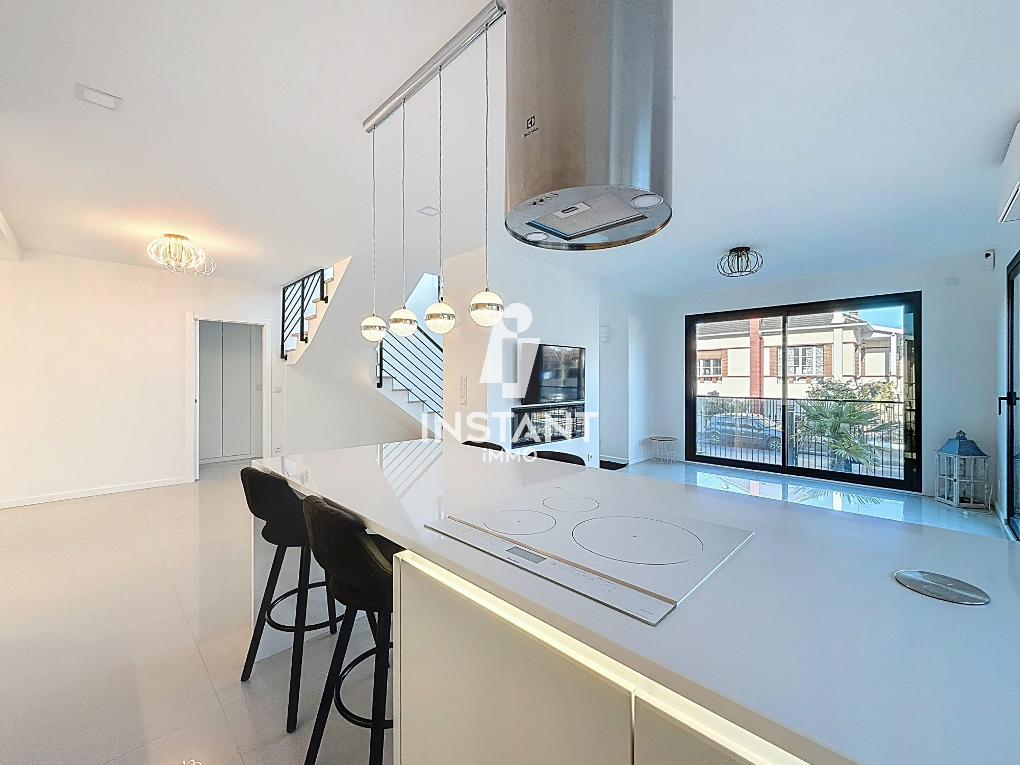 Dès l'entrée, une entrée cathédrale à la HAUTEUR sous plafond SPECTACULAIRE met en scène les VOLUMES et la lumière, offrant une véritable montée en puissance architecturale. La pièce de vie s'ouvre sur une cuisine moderne avec îlot central en Silexstone blanc intégral, idéale pour recevoir.