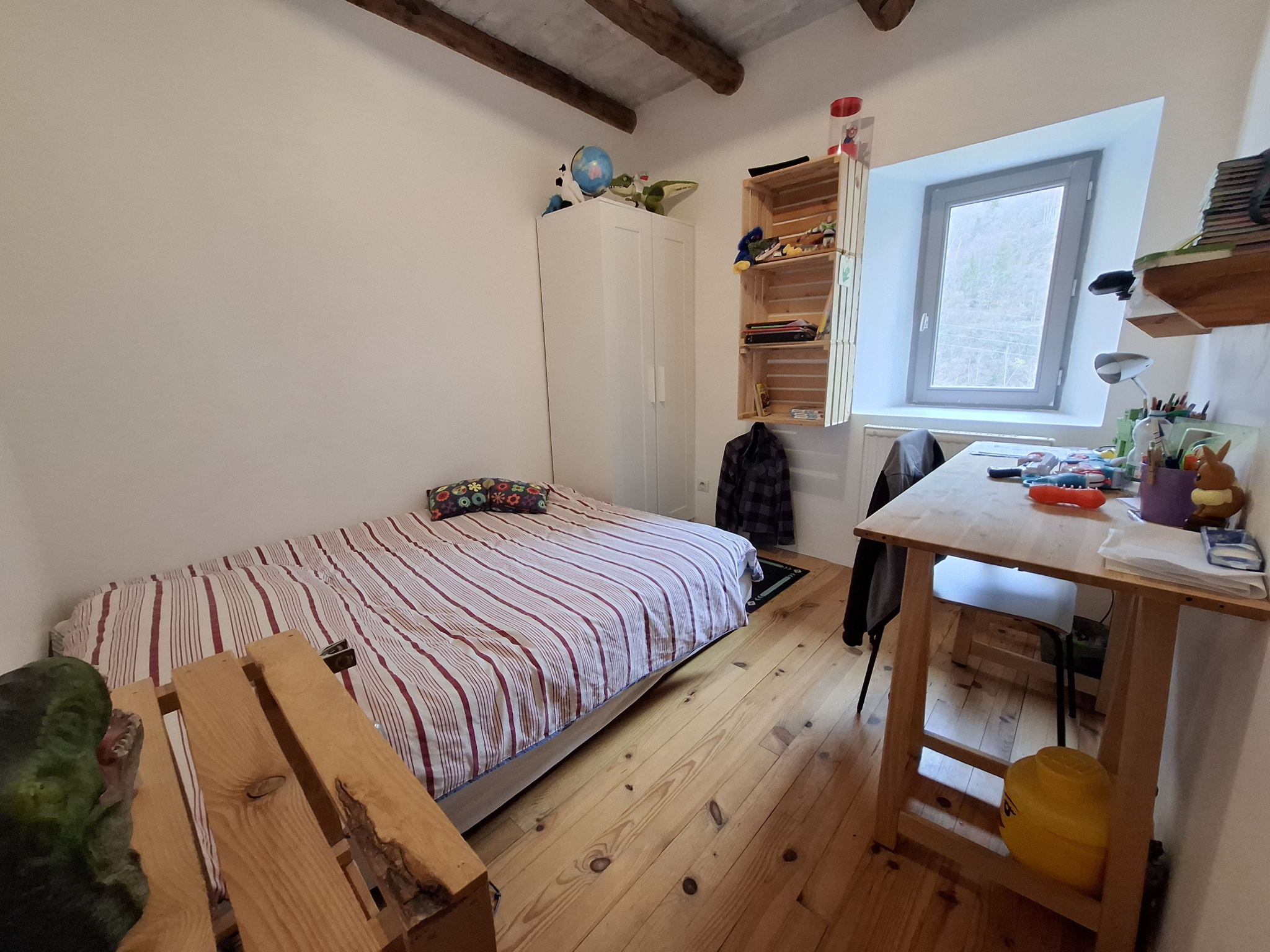 Maison Individuelle Spacieuse et Lumineuse Découvrez cette superbe maison individuelle de 223,87 m² habitables, nichée sur un terrain généreux de 10 748 m². Cette propriété de trois niveaux, exposée plein sud offre une vue dégagée. Séjour spacieux de 45 m² qui donne sur la terrasse, une cuisine équipée, une entrée avec accès direct au double garage, une salle de bains, un WC, une salle d'eau et 4 chambres. Au premier étage : un couloir, une salle de jeux, 4 chambres, deux salles d'eau, deux WC et des combles. La cave, le grenier et le sous-sol offrent un espace de rangement supplémentaire. Sur le terrain : une source d'eau, une piscine hors-sol tubulaire, un poulailler, un abris bois et un parking. Système de chauffage économique avec panneaux solaires (2000 de coûts réels en 2024).