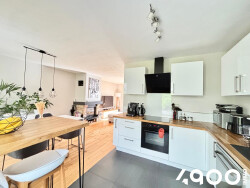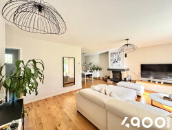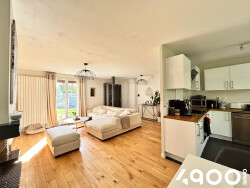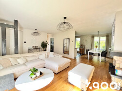 Une entrée donnant sur un double séjour lumineux avec paquet massif et cheminée, une cuisine ouverte et équipée, un accès sur une véranda de 15m2, 3 chambres et une salle d'eau avec WC suspendus.