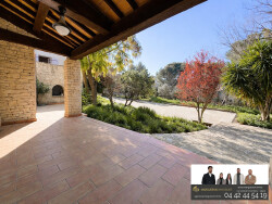 NOUVEAU SAINT MITRE LES REMPARTS, l'agence Margueron Immobilier vous présente à la vente, au coeur d'une pinède et dans un environnement d'un calme absolu, cette élégante villa 7 pièces d'environ 210 m² habitables séduit par son charme provençal et ses beaux volumes. Implantée sur un magnifique terrain arboré de 5 600 m², la propriété offre un cadre de vie rare entre nature et sérénité. Le rez-de-chaussée accueille un vaste espace de vie lumineux comprenant salon avec cheminée, poutres apparentes et arches en pierre, salle à manger et cuisine ouverte sur les terrasses. À l'étage, l'espace nuit propose trois chambres, dont une avec accès à une très grande terrasse, un dressing, deux salles de bain et un WC indépendant. La propriété dispose également d'un studio indépendant T2, idéal pour recevoir, télétravailler ou générer un revenu locatif. Ses atouts : Terrain de 5 600 m² offrant intimité et tranquillité, studio indépendant, grand garage et cave, charme provençal, à 5 min du village. Un lieu de vie privilégié, entre pinède et littoral. Pour plus de renseignements, contactez Sébastien MASSOT au 06.19.81.55.20. Honoraires charge vendeur.
