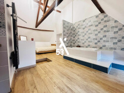Dès l'entrée, vous êtes enveloppé par une ambiance chaleureuse grâce aux murs en pierre apparente et aux parquets en chêne massif. Le salon-séjour, baigné de lumière naturelle, vous invite à partager des moments conviviaux autour d'un feu de cheminée. La cuisine moderne, équipée d'un îlot central et de plans de travail en granit, s'ouvre sur le séjour pour une circulation fluide et une ambiance familiale.