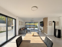 Confort et équipements : - Pompe à chaleur air/eau avec plancher chauffant dans toute la maison - Climatisation réversible dans toute la maison - Poêle à granulés - Domotique complète : éclairage, volet roulant, serrure de porte d'entrée ainsi que tous les modes de chauffage, piloter votre maison à la voix ou avec votre smartphone - Borne de recharge rapide pour véhicule électrique