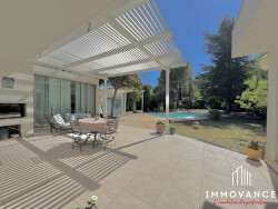 EXCLUSIVITÉ - SAINT-PAUL-ET-VALMALLE Villa d'architecte de 220m2 de plain pied (170m2 habitables) avec piscine et double garage À seulement 25 minutes de Montpellier par l'A750, découvrez cette villa d'architecte de plain-pied, en excellent état, implantée sur un vaste terrain arboré et sans aucun vis-à-vis. Localisation privilégiéeSituée à proximité du centre du village, la maison bénéficie d'un environnement résidentiel calme et recherché, tout en offrant un accès rapide vers Montpellier. Un cadre idéal pour une famille souhaitant profiter de la tranquillité de la campagne à deux pas de la ville. La maison se compose de : Hall d'entrée avec rangements Séjour lumineux avec vue dégagée, salle à manger et salon TV Cuisine équipée et aménagée Véranda aménagée en bureau 4 chambres, dont une suite parentale avec dressing et salle de bains Salle de bains indépendante, salle d'eau, buanderie et cave Pièce jacuzzi avec salle d'eau attenante Accès direct au double garage Les plus : Villa indépendante, entièrement tournée vers le jardin et la piscine Climatisation pour un confort optimal Grandes terrasses ombragées Piscine 5x10, parfaitement intégrée dans un cadre verdoyant Environnement calme, arboré et sans aucun vis-à-vis Un bien rare sur le secteur.