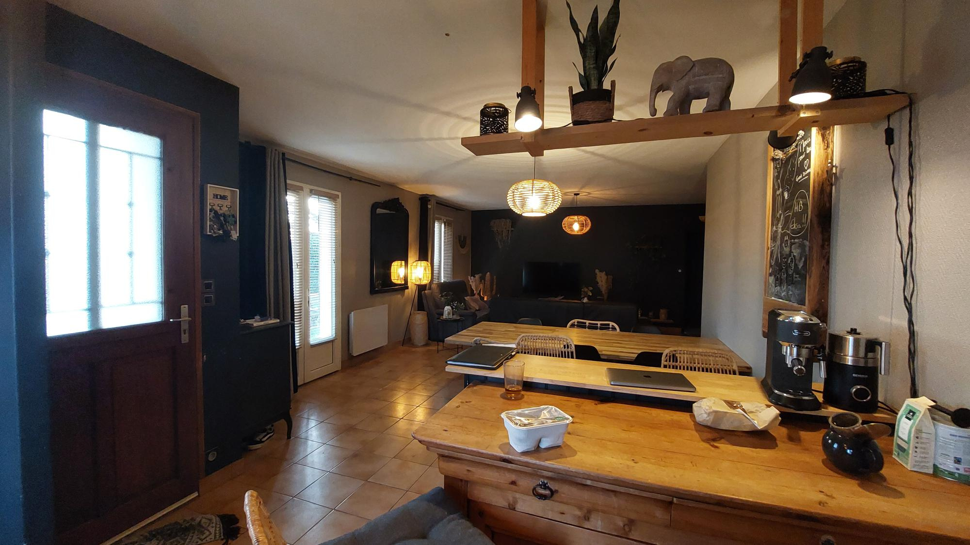 Côté confort, la maison est équipée d'un système de chauffage par pompe à chaleur complété par un insert à bois, pour une chaleur agréable et économique.