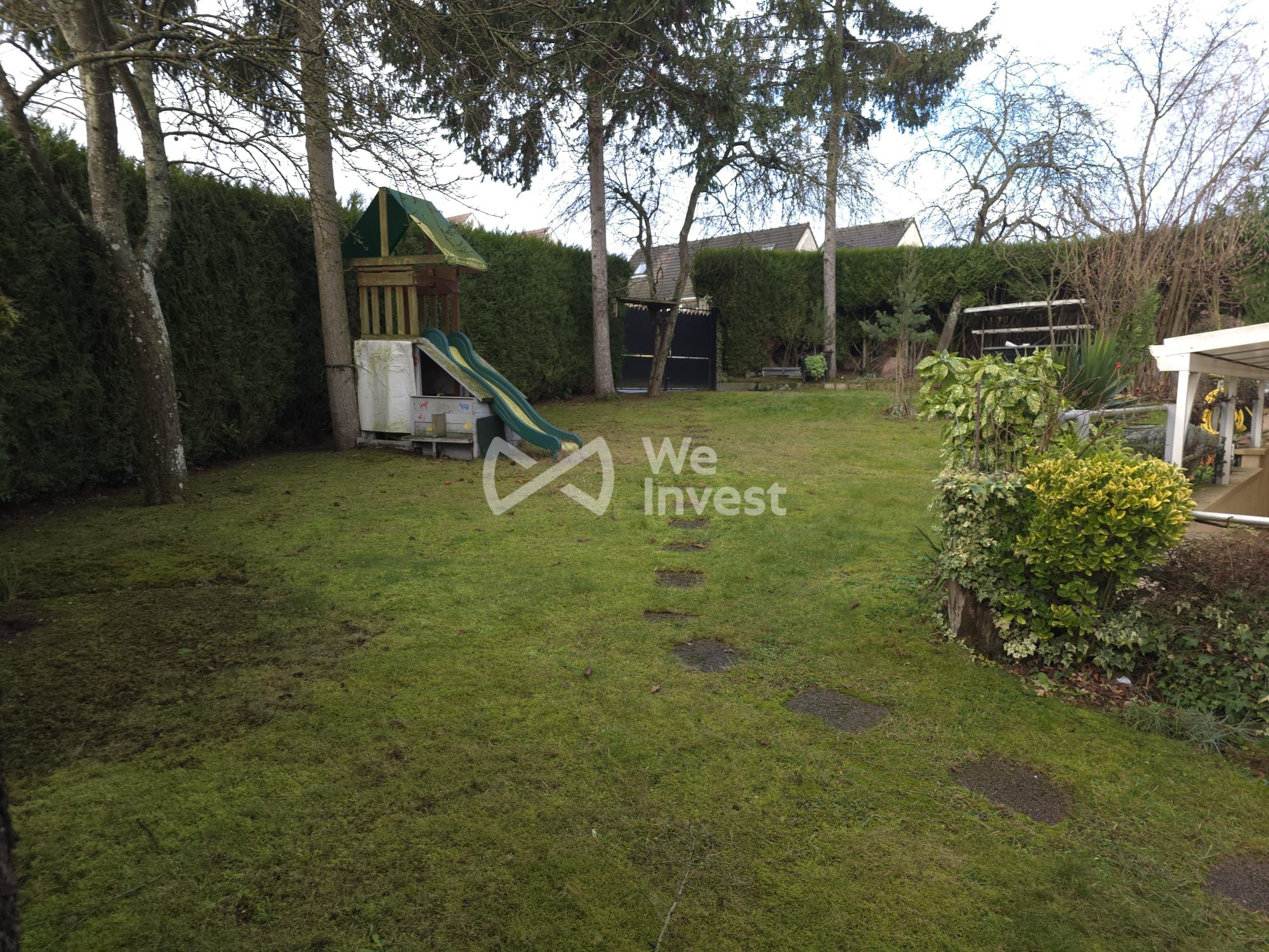À l'extérieur, terrain clos et sans vis-à-vis, une terrasse carrelée avec une pergola bioclimatique.