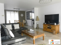 Maison individuelle de plain-pied, se compose d'une entrrée, un grand séjour lumineux, une salle à manger, un coin cuisine équipée et aménagée, une buanderie. Un couloir qui dessert une salle de bain avec wc, 4 chambres dont une avec une salle d'eau + wc.