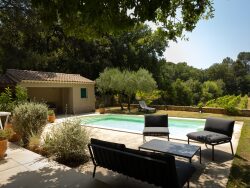 Saint Victor la Coste - Une pépite - Maison contemporaine idéalement située sur les hauteurs sans vis à vis, belles prestations, vue panoramique composée d'un salon séjour cuisine ouverte de 60 m², 2 chambres, dressing, 1 bureau-chambre, buanderie, garage, caves, piscine, barbecue, plus, un appartement locatif deux pièces de 33 m² meublé avec terrasse privée. Les extérieurs ont été pensés et réalisés par un architecte paysager. Double vitrage, volets roulants électriques, portes à galandage. Chauffage au sol pompe à chaleur air-eau avec sol rafraîchissant l'été.