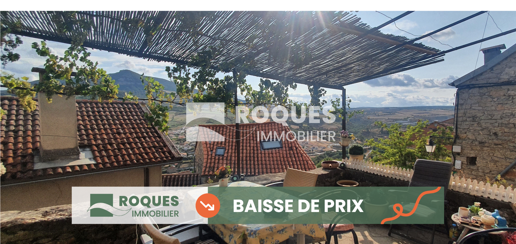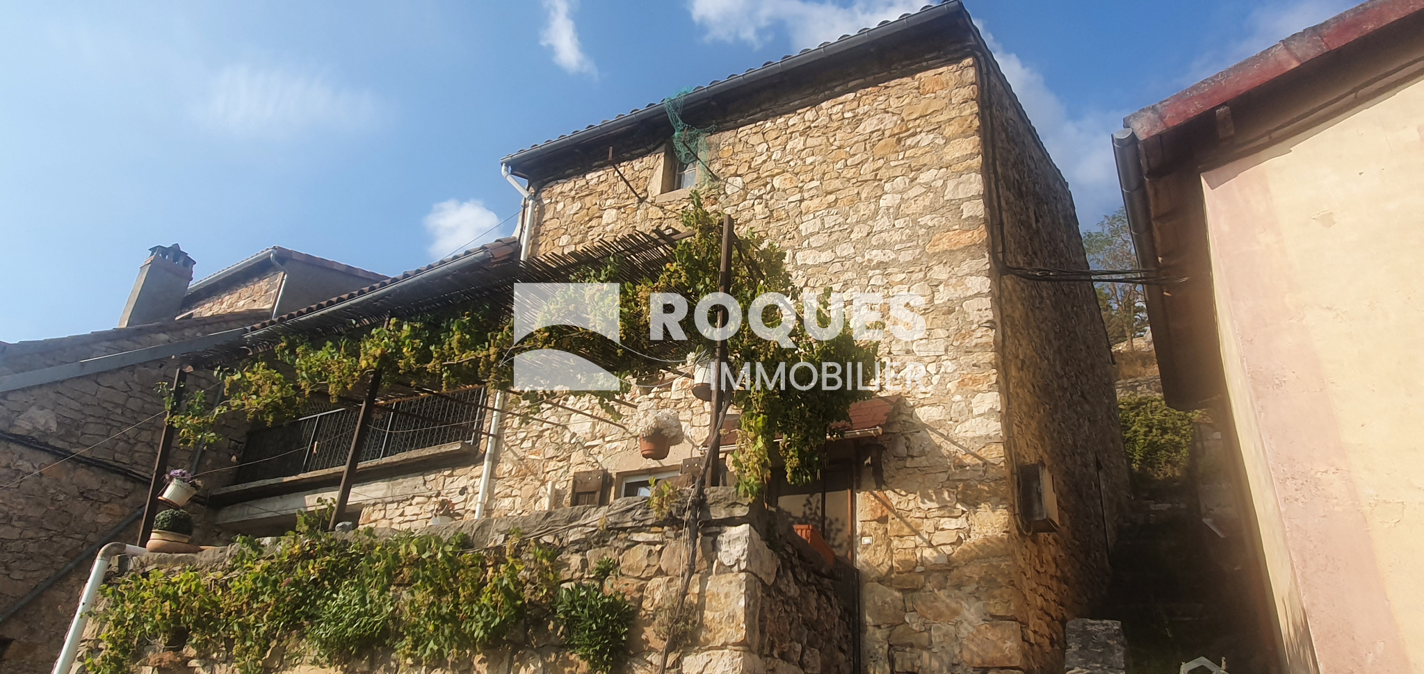 La maison se compose d'une pièce de vie avec coin cuisine, de deux chambres, dont une avec salle d'eau existante et une en projection dans la seconde chambre. Une cave, un garage, plusieurs terrasses et une dépendance complètent ce bien.