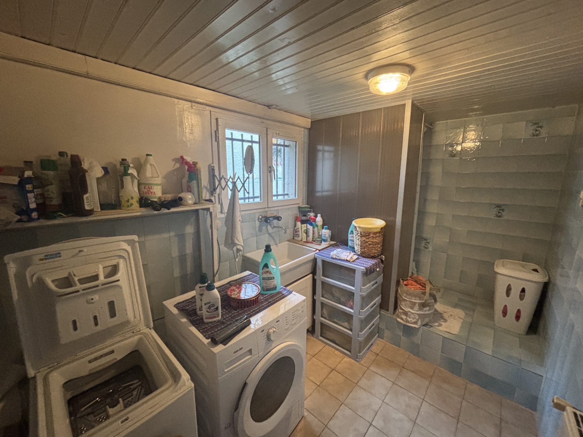 Avec ses 85 m² habitables, cette maison comprend 4 pièces, dont 3 chambres et une salle d'eau . La cuisine aménagée et équipée ouverte sur le séjour , une buanderie et une pièce de stockage de 12 m2 environ