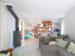 Au rez-de-chaussée, un spacieux séjour de 26 m² avec son poële à bois, baigné de lumière naturelle vous accueille. Cet espace convivial est idéal pour les réunions familiales ou les soirées entre amis. La cuisine, moderne et fonctionnelle, est parfaite pour les passionnés de gastronomie. Vous pourrez y préparer vos plats préférés tout en profitant de la vue sur le jardin. La véranda qui se situe dans le prolongement du salon et de la cuisine est le véritable atout de cette maison.