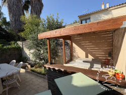 Golfe de Saint-Pierre Immobilier vous propose, côté Barrou, au calme à quelques pas de l'étang, une belle maison familiale de 109 m2 environs entièrement rénové en 2019, sur un terrain de 220 m² avec piscine.