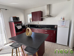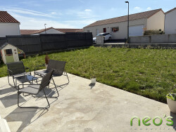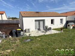 EXCLUSIVITE NEO'S IMMOBILIER SAINT MACAIRE EN MAUGES Pavillon de plain-pied de 2020, 80 m² habitables comprenant : Un hall d'entrée, salon-séjour, cuisine ouverte AE, dégagement, 2 chambres, bureau, SDE et WC. Lingerie. Terrain de 360 m². (Normes RT2012, chauffage : aérothermie au sol)