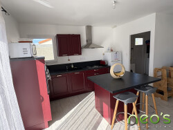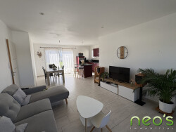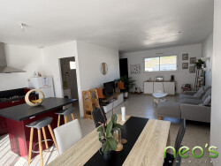 EXCLUSIVITE NEO'S IMMOBILIER SAINT MACAIRE EN MAUGES Pavillon de plain-pied de 2020, 80 m² habitables comprenant : Un hall d'entrée, salon-séjour, cuisine ouverte AE, dégagement, 2 chambres, bureau, SDE et WC. Lingerie. Terrain de 360 m². (Normes RT2012, chauffage : aérothermie au sol)