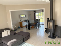 Sous compromis : SAINT MACAIRE EN MAUGES QUARTIER CALME, Pavillon de plain-pied en EXCELLENT ETAT, 141 m² habitables comprenant : Hall d'entrée salon séjour, cuisine AE, arrière cuisine/lingerie, dégagement, 4 chambres, bureau, salle de bains, Wc. Grand garage (58 m²) avec grenier. Jardin clos paysager 723 m².