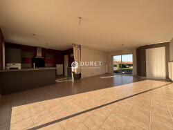 L'Agence DURET vous propose à l'achat cette maison de plain-pied comprenant : une grande pièce de vie avec cuisine aménagée-équipée, un dégagement, 3 chambres, un WC et une salle de bains. En annexes : un grand garage et cabanons. Le tout sur un terrain clos de 938 m² avec piscine hors-sol.