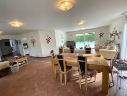 Exclusivité : Sur 700m² de terrain, Belle villa T5 de plain pied avec garage, piscine et d'immenses terrasses. Cette maison vous offre une grande pièce de vie lumineuse, double salon et salle à manger donnant directement sur les terrasses et l'espace piscine avec son coin barbecue. Sa cuisine équipée et aménagée indépendante. Une buanderie et un cellier puis un WC indépendant , un garage de belle dimension 36.20 m² ;Le côté nuit offre la suite parentale avec sa salle d'eau WC. Le couloir dessert les 3 autres chambres puis une salle de bains indépendante comprenant douche et baignoire. De belles prestations avec un système de vidéosurveillance, une climatisation réversible, des volets roulants électriques, interphone, visiophone, alarme, forage pour l'alimentation en eau d'arrosage du jardin. Venez visite ce bijou !